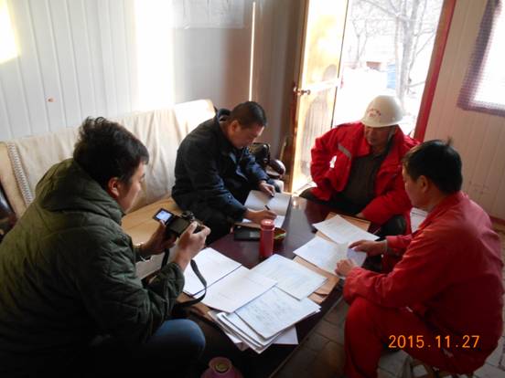 2015年11月27日,青海物產集團副總經理徐涌,安全員劉鐵金對青海物產爆破技術服務有限公司大力加山項目部,民小公路項目部進行了安全檢查,青海物產爆破技術服務有限公司安全總監解統科陪同檢查。