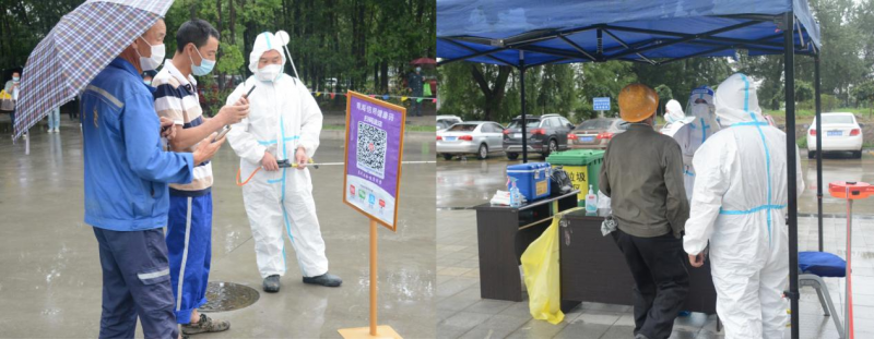 清晨,在綿綿細雨中園區新一輪區域核酸檢測有序推進,核酸檢測點搭起遮雨帳篷,公司廣大黨員干部奮勇擔當沖鋒在前,維護秩序、進行掃碼,醫護人員快速有效地采集核酸。大家上下同心、通力配合,有序高效的進行核酸檢測,僅用了三個多小時就全面完成了園區人員核酸采樣工作。據統計,本次核酸檢測共有1103名干部職工及外租單位人員參加,檢測結果全部為陰性。
