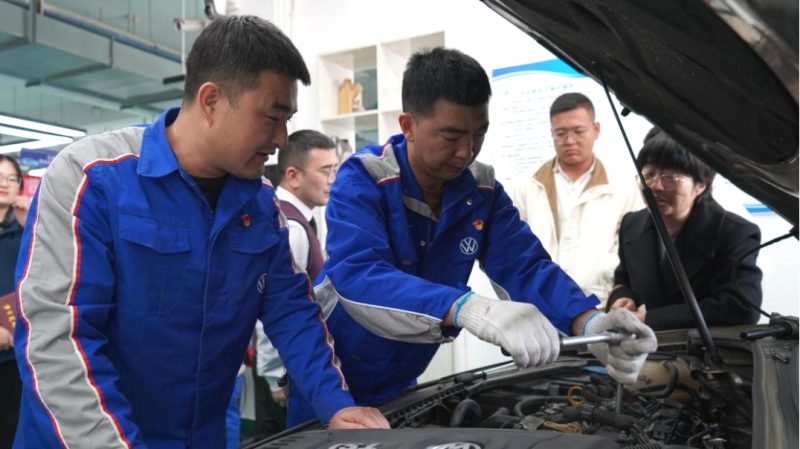 在汽車維修現場,汽貿公司“售后服務黨員突擊隊”為交通運輸學院老師的車輛做了全方位、專業的汽車保養售后服務。一張“檢查安全維護十二項”的保修單就是公司開展“上門服務”的“清單”,逐一列上了車輛維修保養的詳細內容和對客戶的承諾,還幫助客戶將以后用車中的注意事項做了全面梳理。由于這次服務對象,都有一定的汽車專業性知識儲備,所以在邊做維修服務的同時,工匠們與老師們交流了各品牌車輛的保養、檢測、改裝等方面的內容,對今后的工作方向有了新的思考。