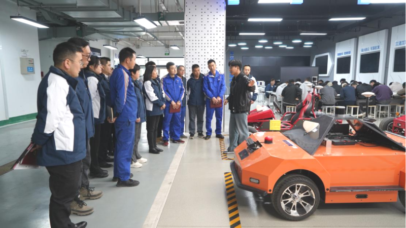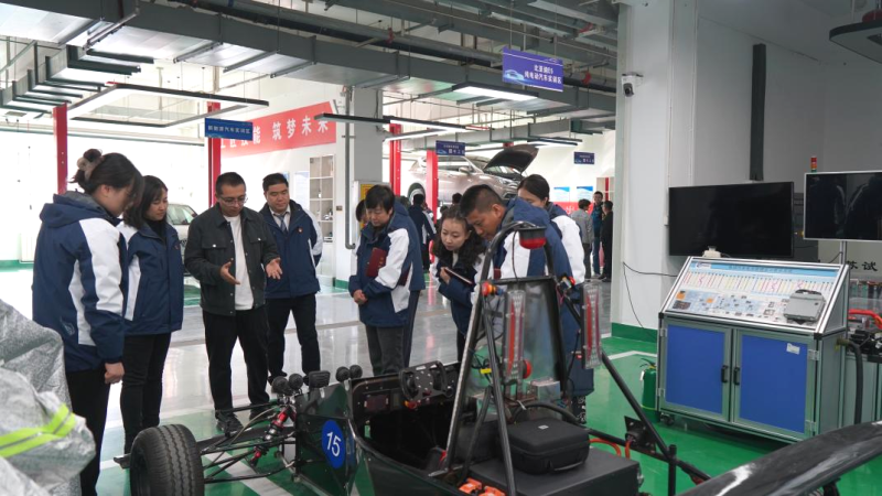 在參觀比亞迪E5純電動車實訓區時,大家看到了學院2023年全國行業職業技能大賽二等獎作品的技術“含金量”,饒有興趣地了解了繪圖-備材-制作-成型的具體過程,以及對轉動、逃生、行駛、焊接、拆裝、車架與車身的測試。高校的科研成果凝聚了工匠精神傳承和“惟專惟精、匠人匠心”的人才培養理念,在提升職業道德修養、增強專業技術能力、發展創新創業能力等方面全面融入了工匠精神培育。在場的黨員仔細觀摩,向創作單位投以敬佩的眼光。雙方在“工匠精神是培養高素質技術技能人才的目標導向,是推動產教融合、校企合作的重要實踐途徑”達成共識。