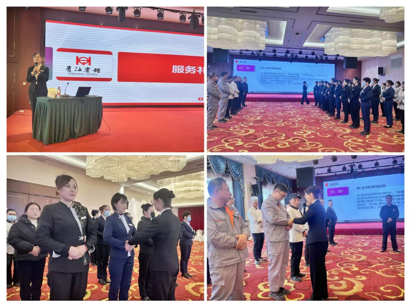 為確保專業性和高質量,活動準備階段,公司特邀青海賓館資深禮儀老師進行《服務禮儀》培訓。以實操教學為核心,精準攻克禮儀手勢痛點,老師采用示范、糾錯的教學方式,讓參訓人員快速掌握核心內容,為服務禮儀展示活動順利舉行打牢了基礎。