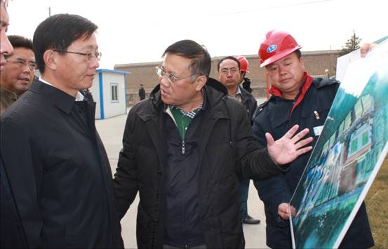 圖三:集團王總向市長一行介紹5萬噸電解鋁產能置換技術升級改造及5萬噸特種鋁合金棒材生產項目